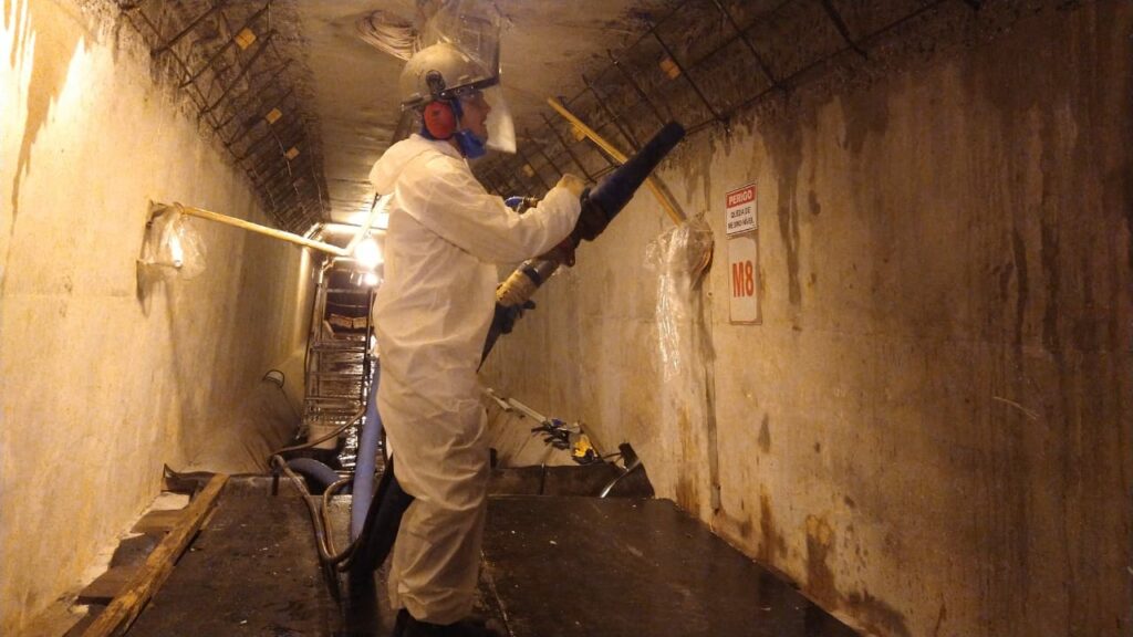 Injeção de poliuretano em juntas de concretagem e execução de reforço estrutural por mísulas superiores contínuas na galeria da barragem.